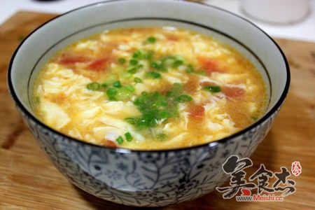 3.淋入水淀粉沿着顺时针方向勾芡,然后加入蛋,加盐,少许鸡精,出锅前倒入香油即可
